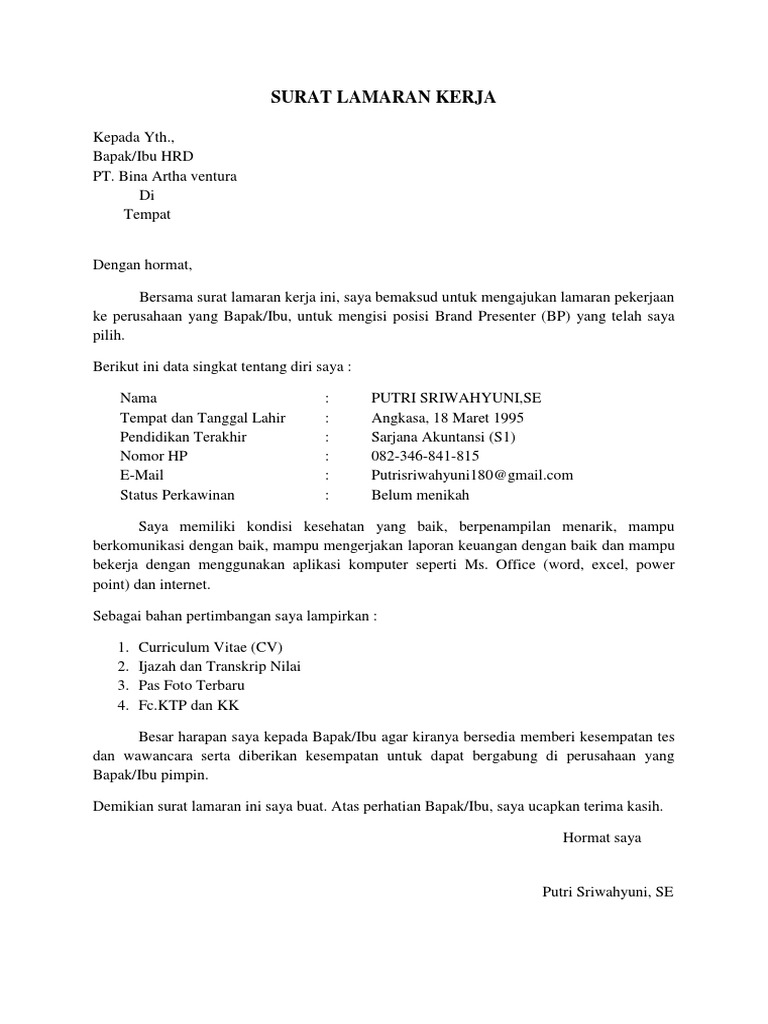 Setelah menemukan lowongan yang sesuai dengan keinginan dan. Penghasilan berupa uang bisa didapatkan dengan cara bekerja dan berbisnis. Materi surat lamaran pekerjaan : Materi surat lamaran kerja : Contoh surat lamaran pekerjaan berikut ini kami sajikan kepada para pelamar atau pencari kerja agar lebih mudah dan cepat mengajukan lamaran sesuai dengan posisi jabatan atau pekerjaan yang.